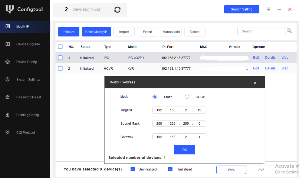 Đầu tiên các bạn cắm dây mạng cho camera (nếu không cắm dây mạng thì cài camera imou vào app Imou Life trên điện thoại để camera kết nối vào mạng wifi của bạn). Sau đó tiến hành đặt ip tĩnh cho camera bằng config tool.
